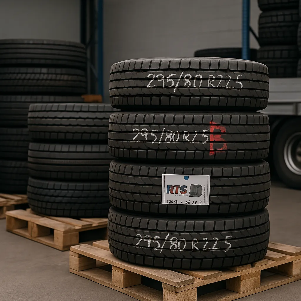 We source new, part-worn, and budget HGV tyres in popular sizes like 295/80 R22.5, 315/80 R22.5, 385/65 R22.5 and deliver by pallet to your depot or fitter.
